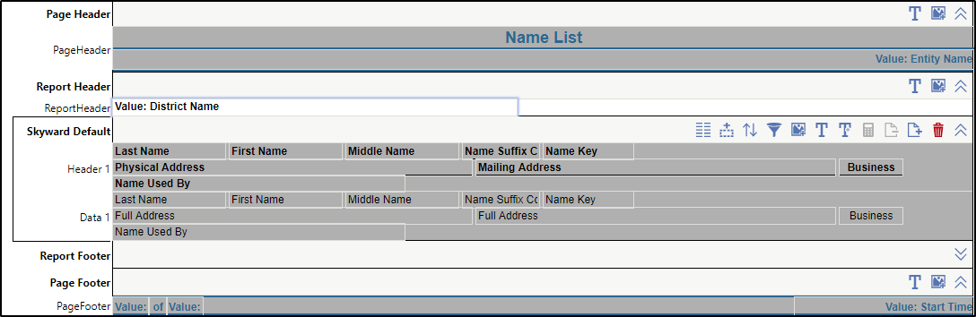 The image below displays the Report Designer at this point in the process. You see the Name ID field added to the Data 1 line of the main section of the report.